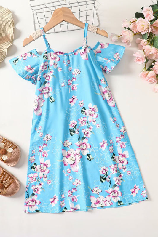 Girls Floral Cold-Shoulder Flutter Sleeve Dress