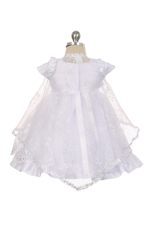 Capped Sleeve Sequin Dress with Embroidered Virgin Mary & Matching Cape for Baby Girls