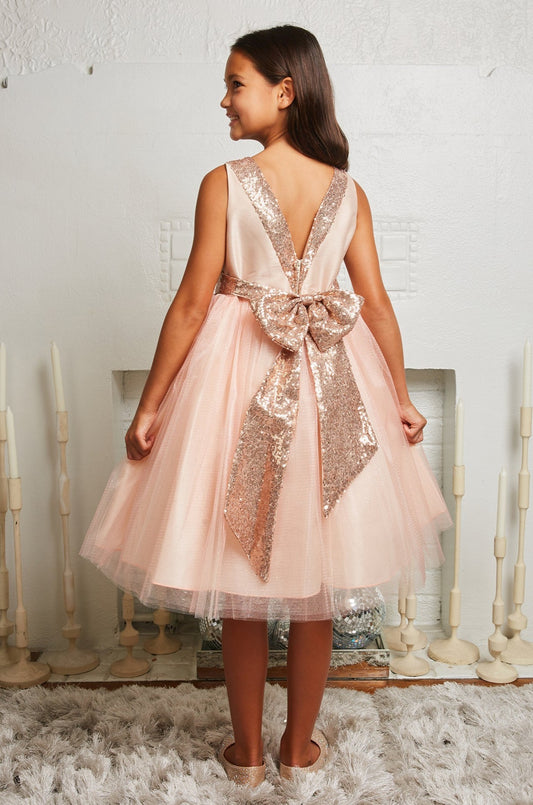 Blush/Rose Gold Sequins V Back & Bow Girls Dress