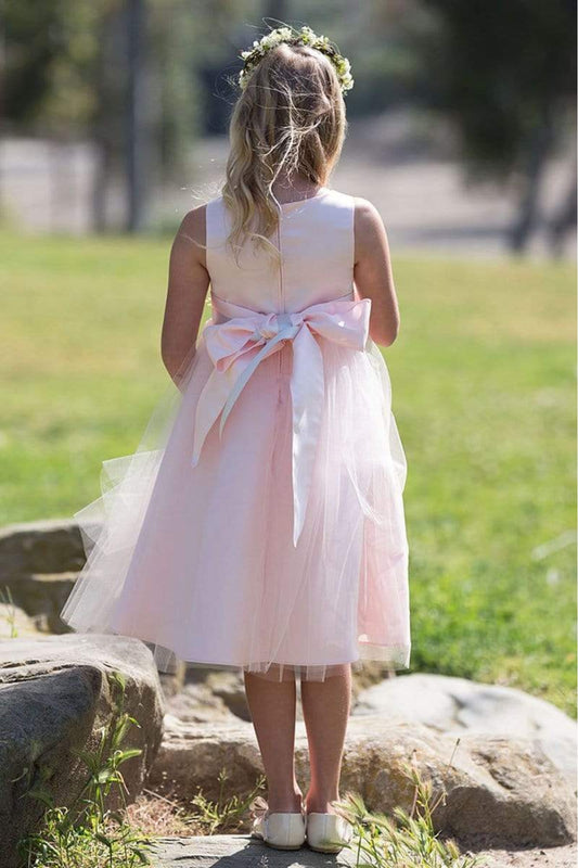 Rossybell Satin & Tulle Girls Dress with Satin Sash & Flower and Plus Size