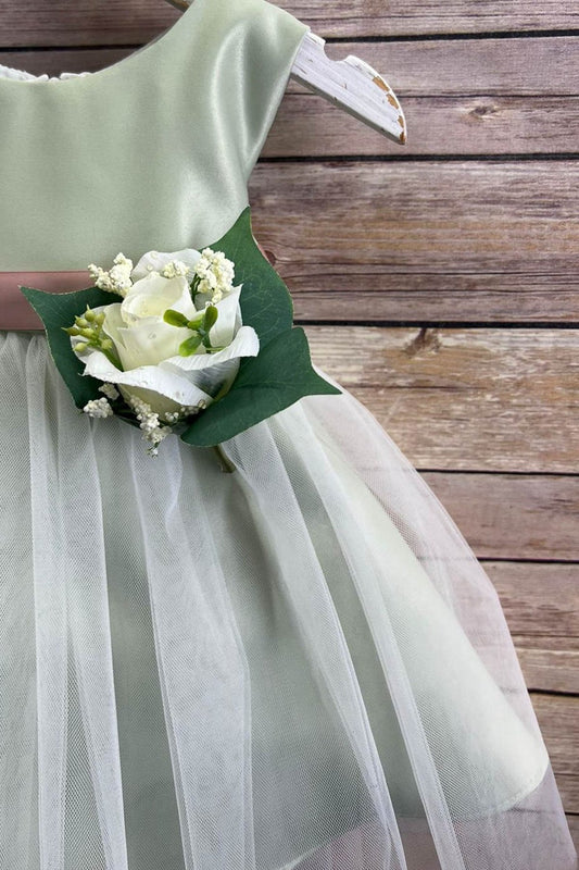 Rossybell Satin & Tulle Baby Dress with Satin Sash & Flower