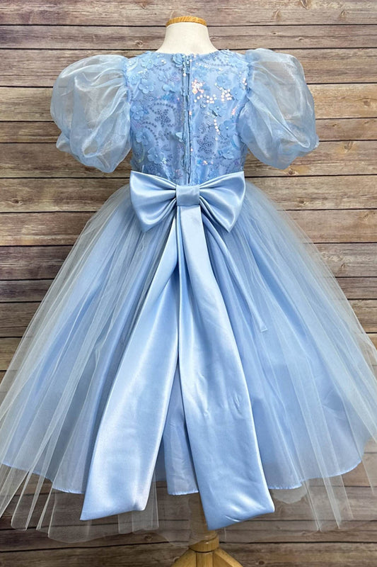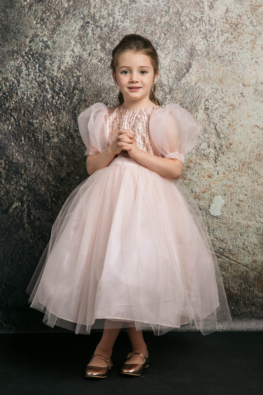 Vivian Sequin & Tulle Girls Dress with Organza Bubble Sleeves