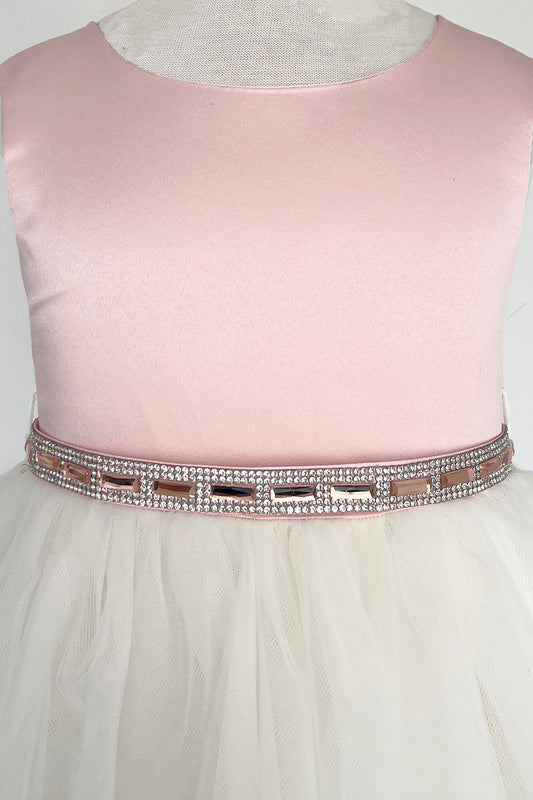Pink & Rose Gold Rhinestone Satin & Tulle Girls Dress