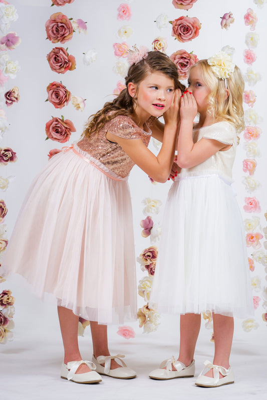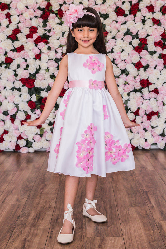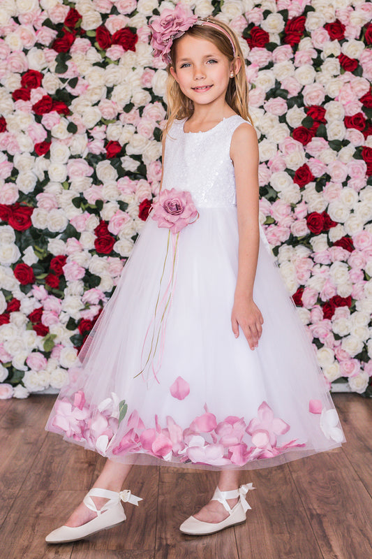 Dusty Rose Top Satin Flower Petal Girls Dress