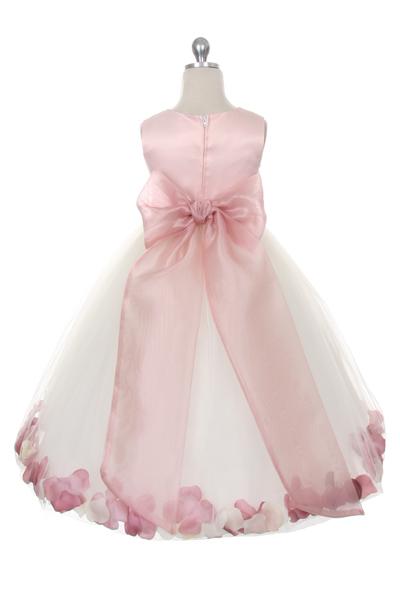Dusty Rose Top Flower Petal Girls Dress with Organza Sash