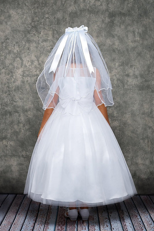 Ivory Classic Poly Silk Girls Dress with Organza Sash
