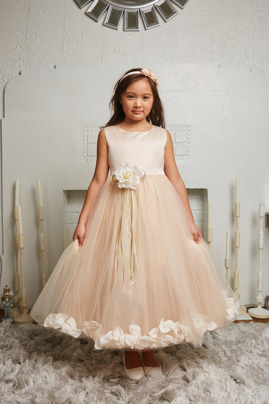 Blush Satin Flower Petal Girls Dress with Plus Sizes