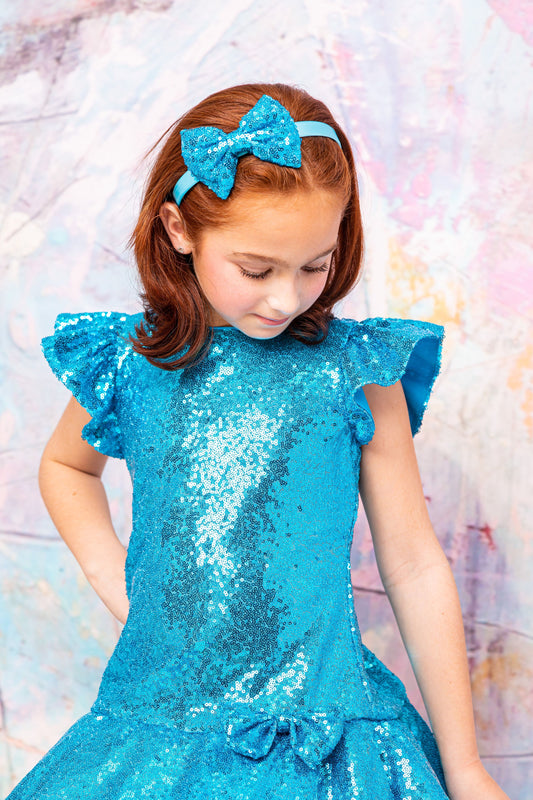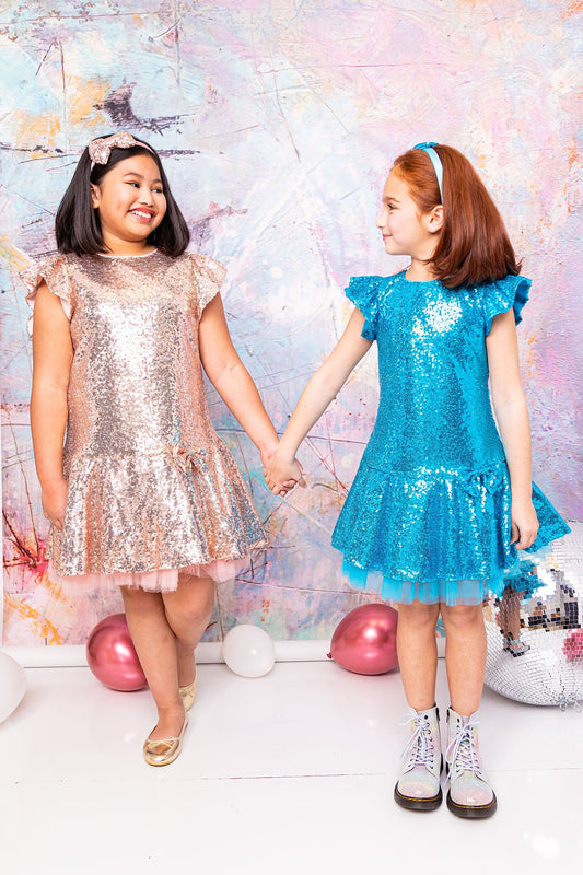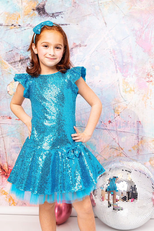 Sequin Ruffle Sleeve Tutu Girls Dress