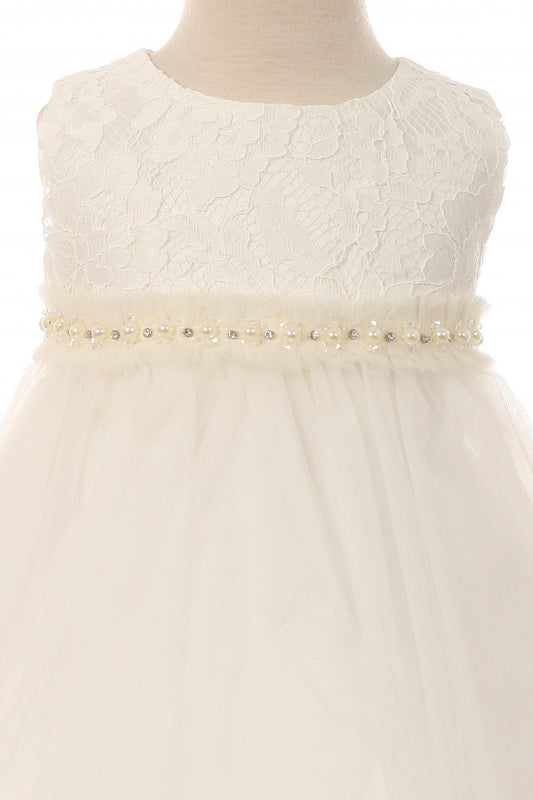 Lace Illusion Baby Dress with Mesh Pearl Trim