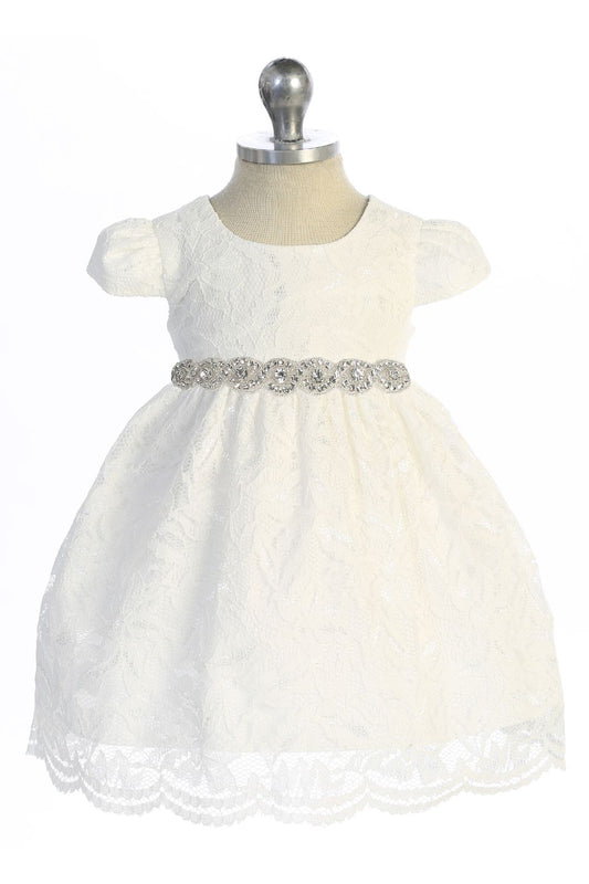 All Lace Baby Dress with V Back & Bow and Rhinestone Trim