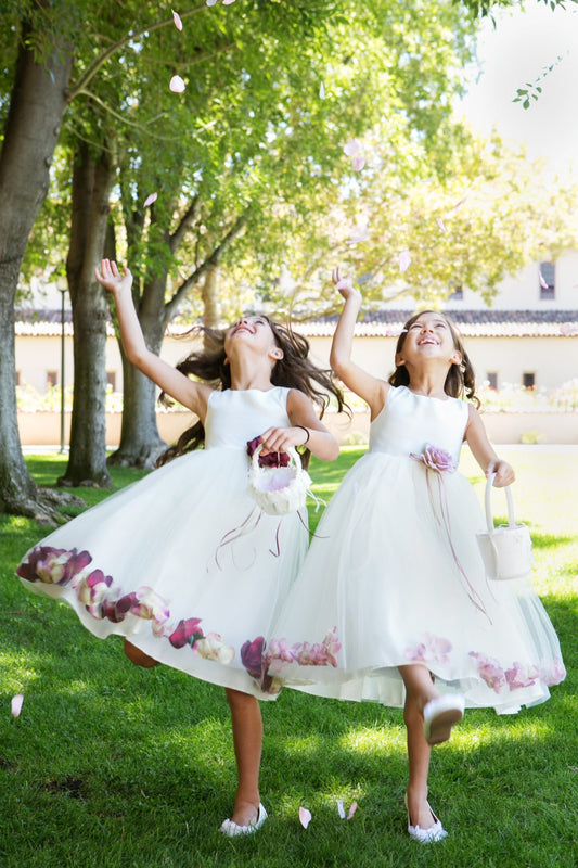 Blush Satin Flower Petal Girls Dress with Plus Sizes