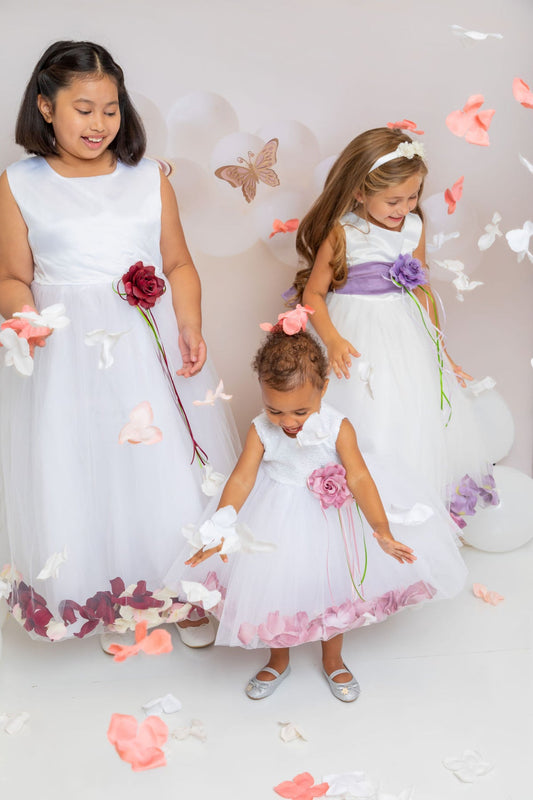 Dusty Rose Top Satin Flower Petal Girls Dress