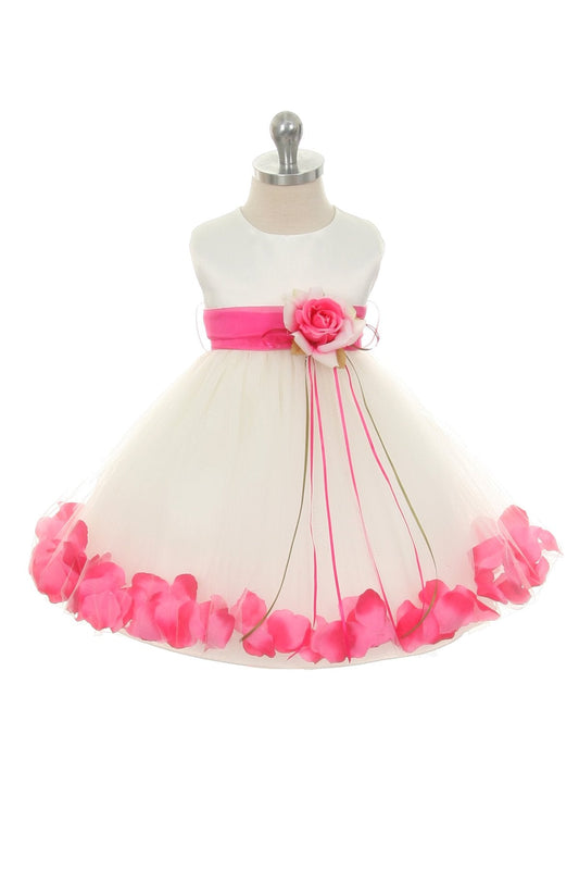 Ivory Satin Flower Petal Baby Dress with Organza Sash