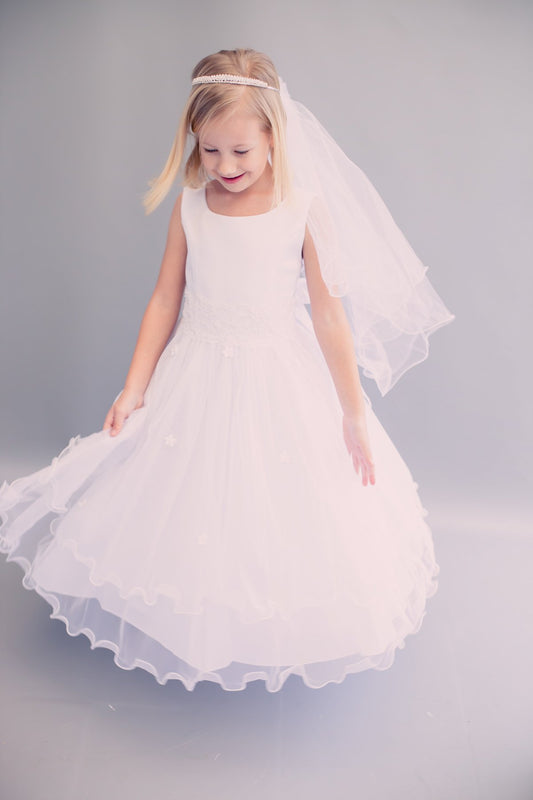 Lace Trim Long Tulle Girls Dress