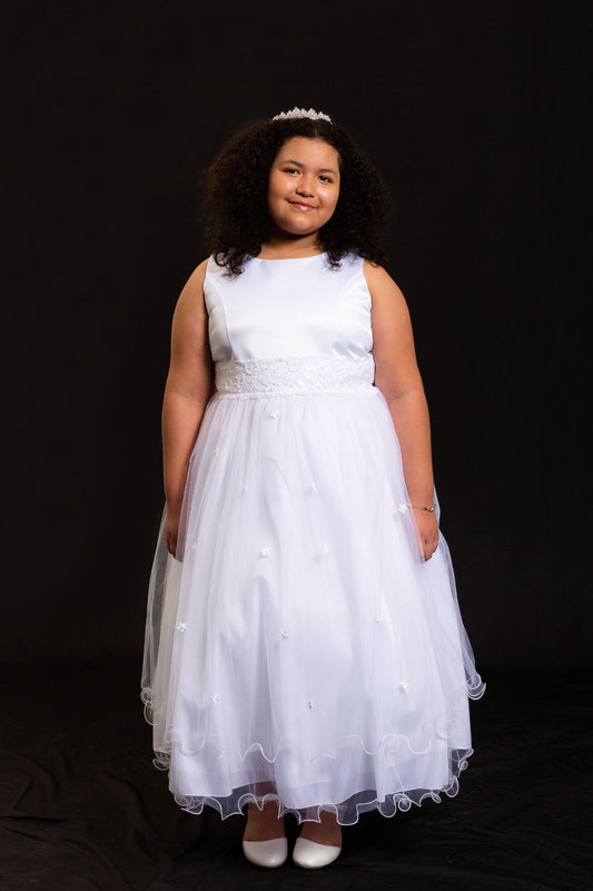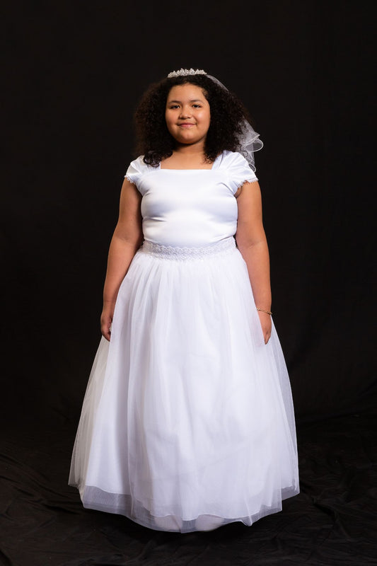 Lace Trim Long Tulle Plus Size Girl Dress