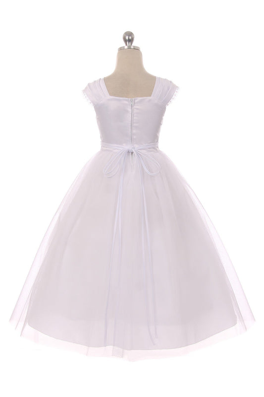 Pleated Capped Sleeve Long Girls Dress
