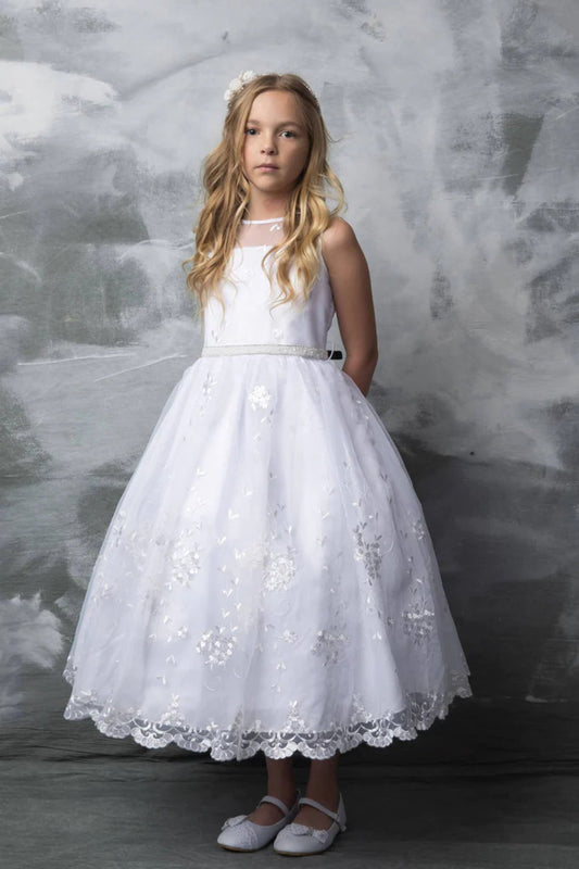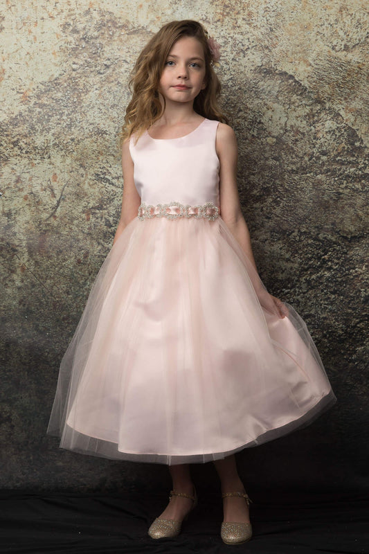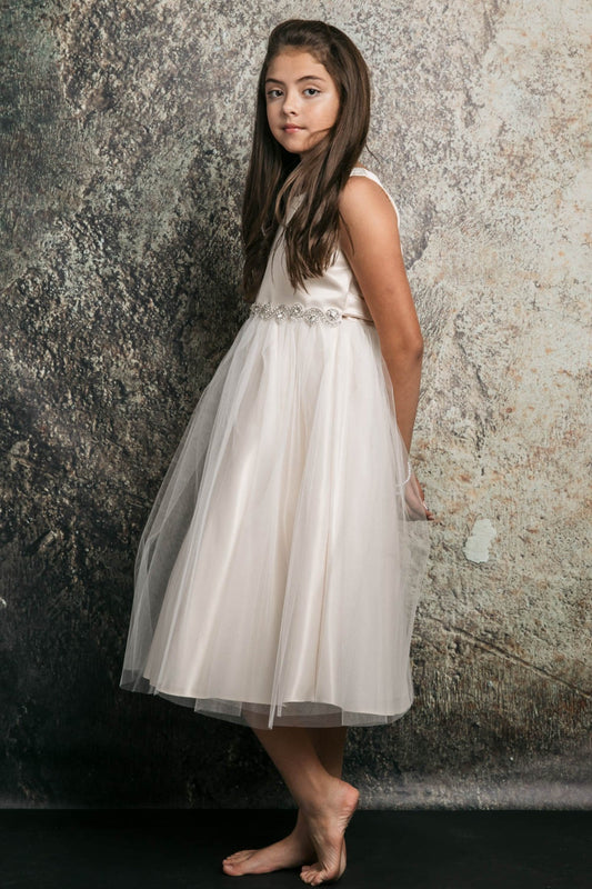 Zoey Satin & Tulle Girls Dress with Crystal Belt and Plus Size