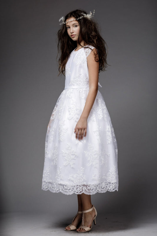 Ella Lace Girls Dress with Pearl Belt and Plus Size