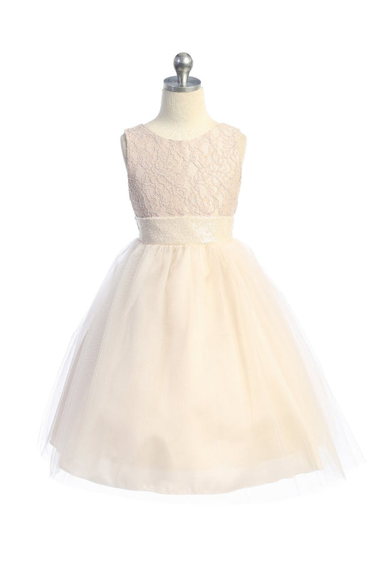 Blush/Rose Gold Sequins V Back & Bow Girls Dress