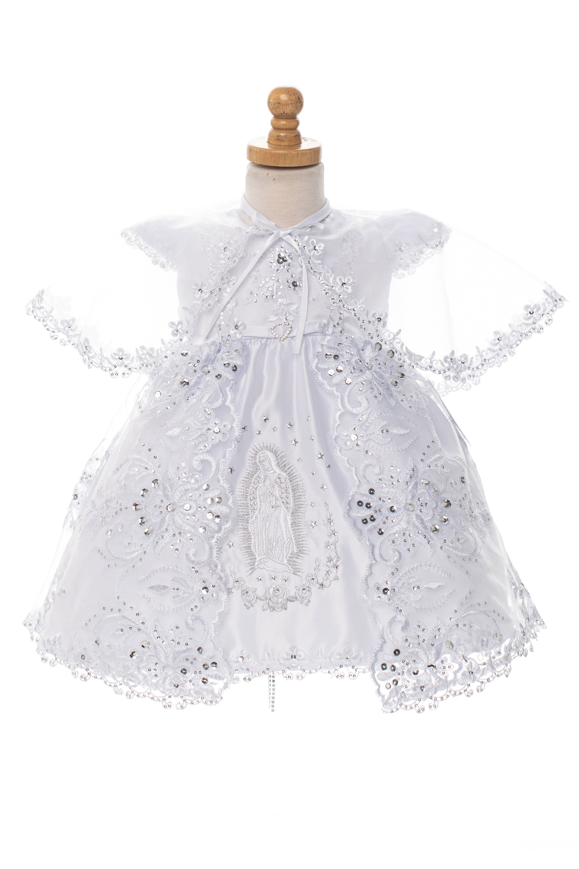 Capped Sleeve Pearl & Sequin Dress with Embroidered Virgin Mary & Matching Cape for Baby Girls (Copy)