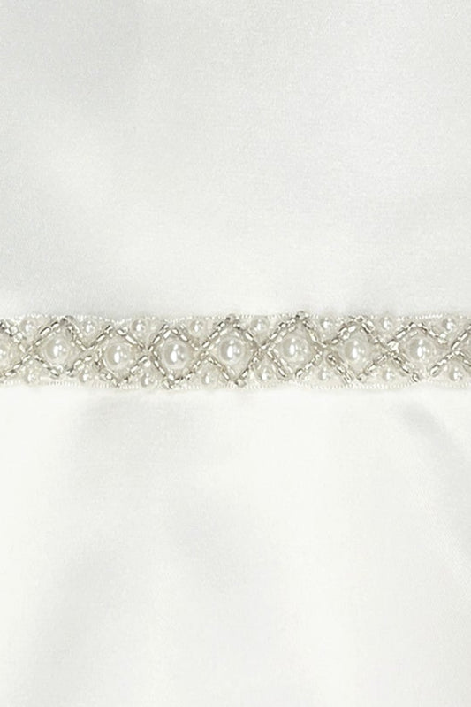 *PREORDER* Long Satin Pearl Trim Girls Communion Dress with Plus Sizes